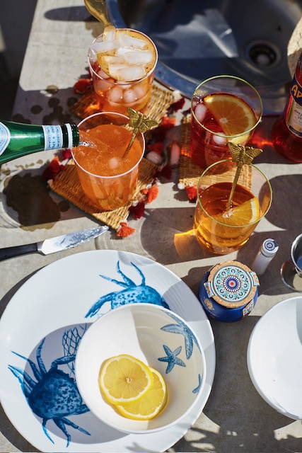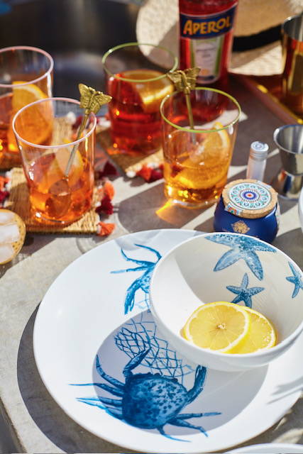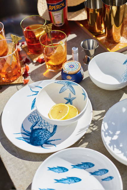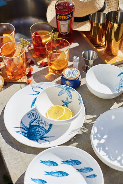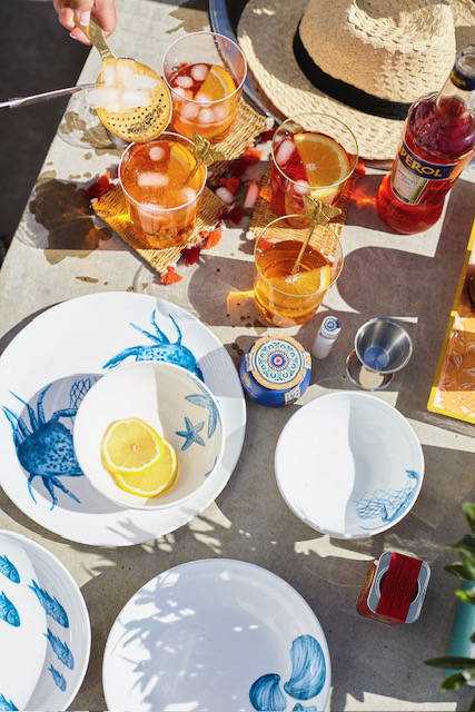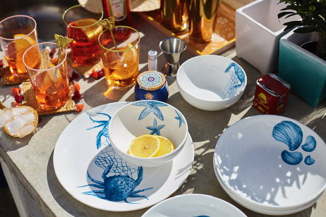 The collection brings together the simple joy of outdoor dining: fresh lemons, sparkling drinks, and sunlight dancing across the ceramics. Designed to be mixed, shared, and loved, these pieces invite you to bring a touch of the coast to your table, wherever you are.
